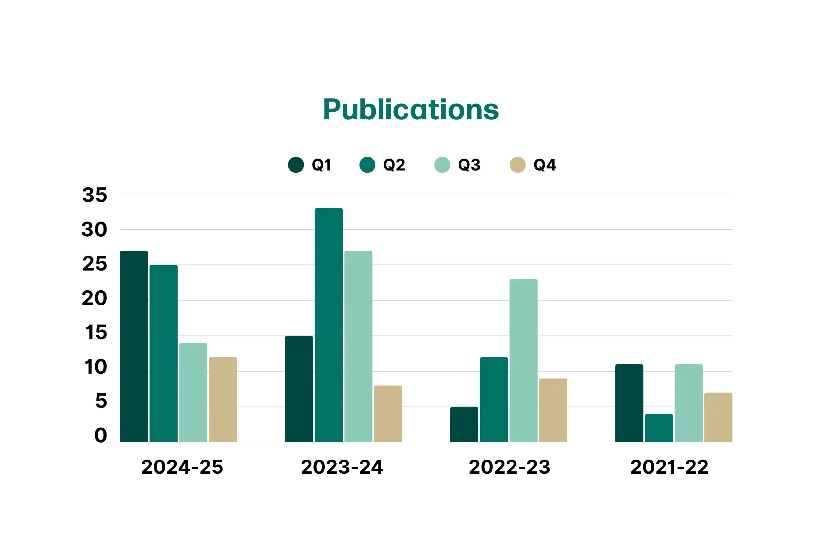 GITAM School of Pharmacy has achieved outstanding research milestones with a strong and consistent publication record over the years. Its research covers diverse areas such as novel drug molecules for neurodegenerative and cancer diseases, advanced drug delivery systems, nanotheranostics, 3D printing, and sustained release formulations. The School reached a peak of 33 publications in Q2 of 2023–24 and 27 in Q1 of 2024–25, reflecting steady growth in quality research. These achievements show the dedication of faculty and researchers to innovation and excellence in pharmaceutical sciences. Consistent contributions across all quarters highlight the School’s momentum in research productivity. Overall, GITAM School of Pharmacy stands as a hub for impactful, innovative, and globally relevant pharmaceutical research.