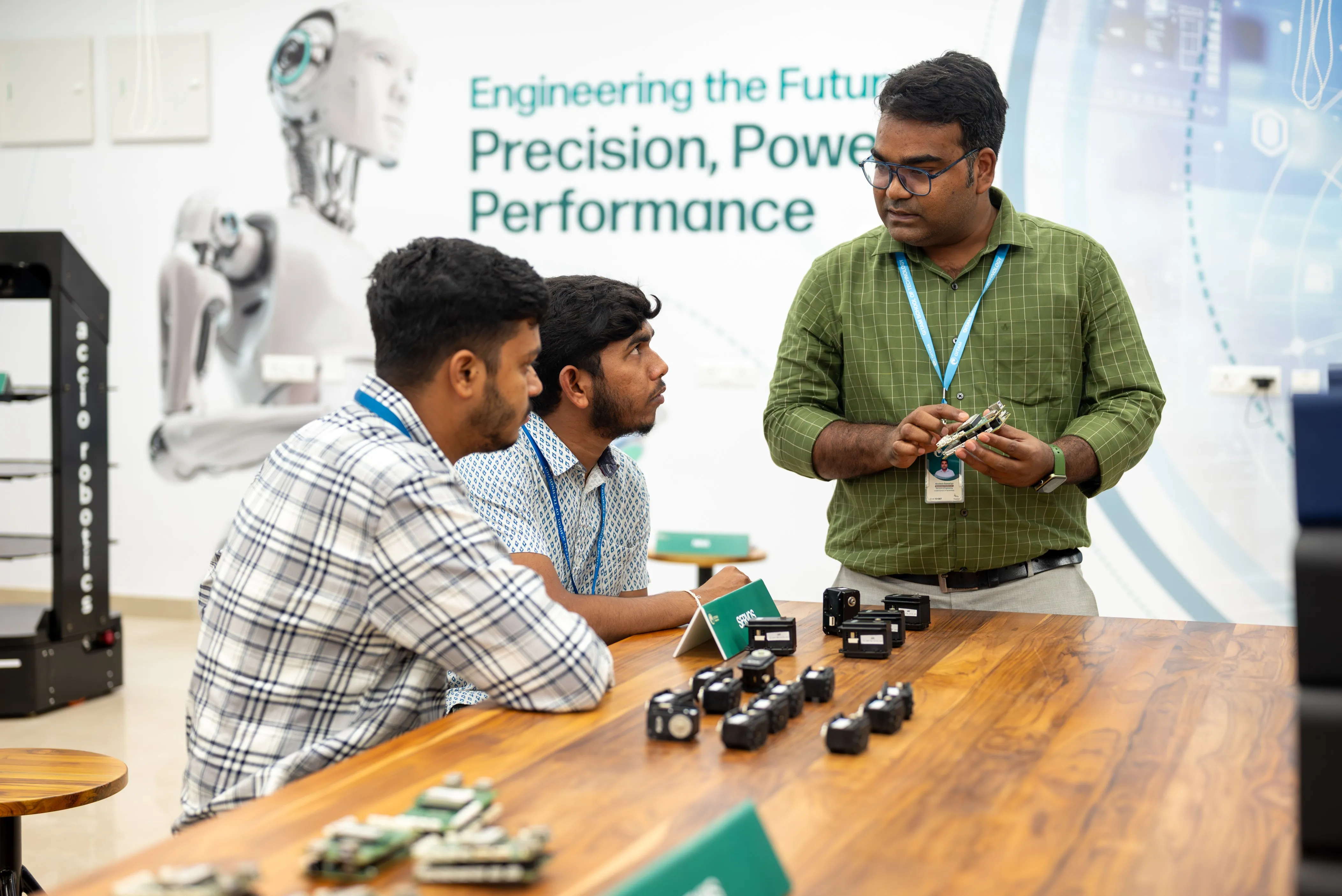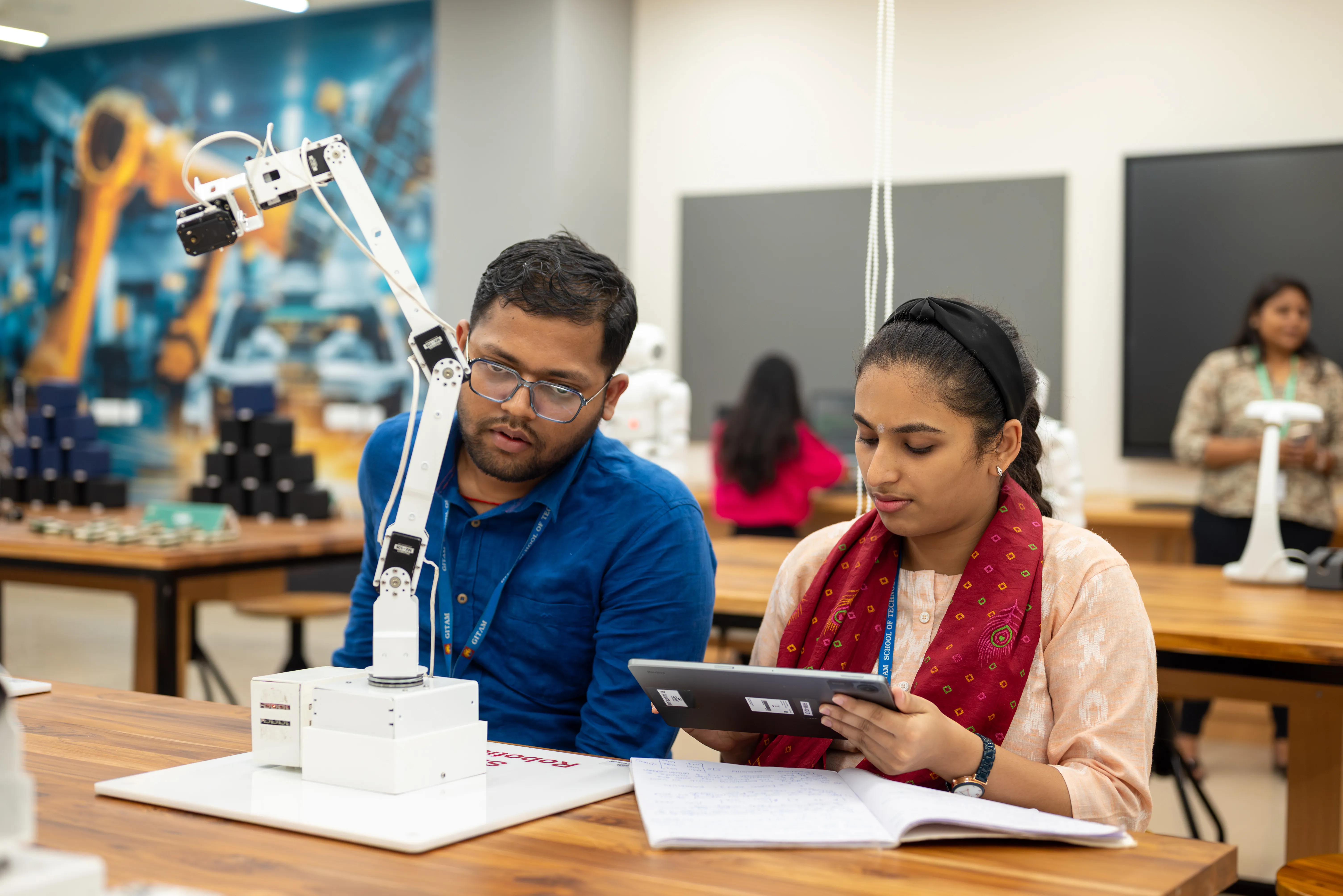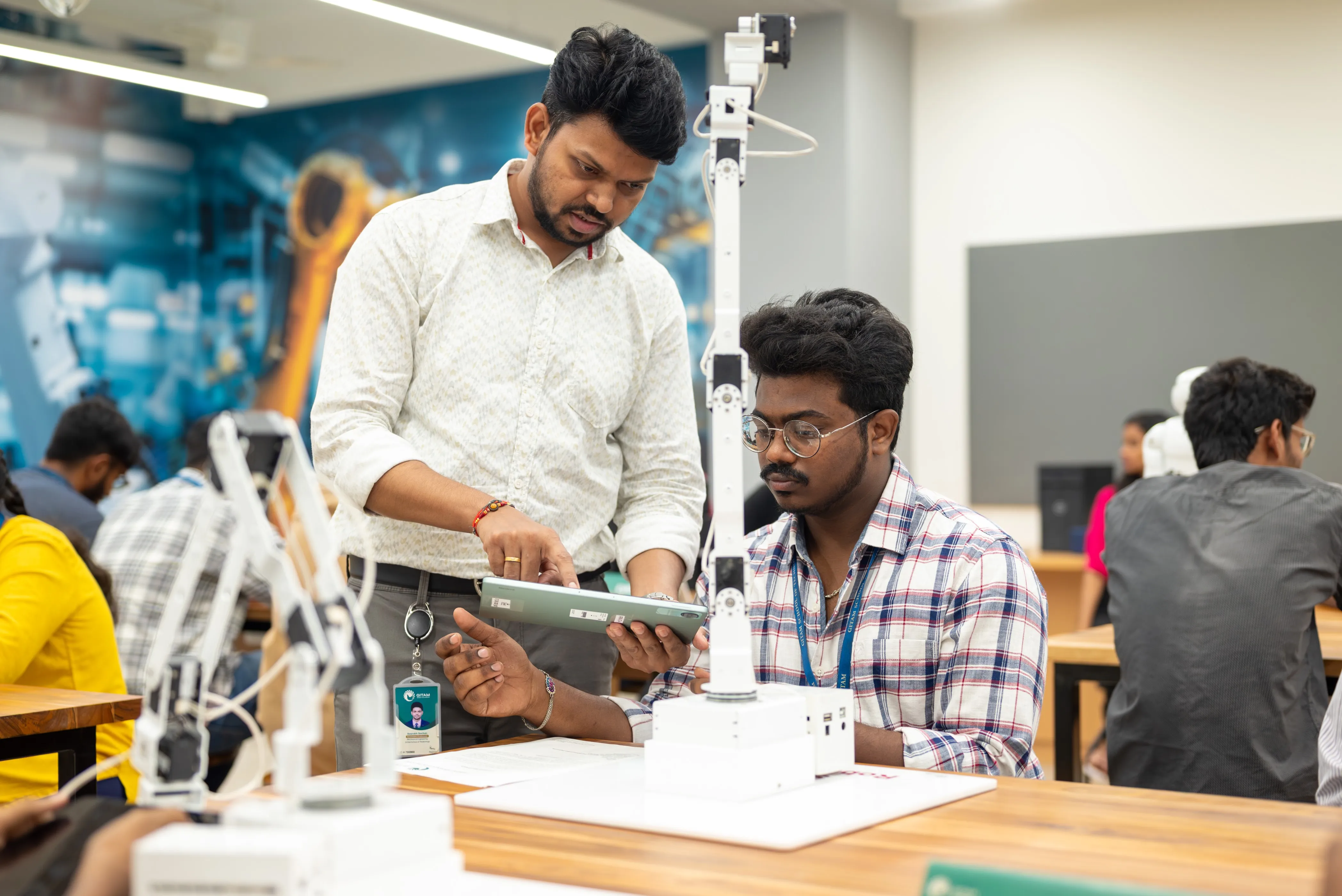 Entry is open to all enrolled students through a merit-based selection process. Student-led initiatives are routed through the Robotics and Automation Club, which conducts internal challenges, builds competition teams for hackathons, and drives weekly hands-on sessions. Select students undergo short-term certifications and module-specific deep dives in mechatronics and automation.